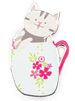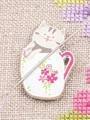 How adorable is this kitty cat popping out of this cup? She's the perfect addition to your needle minder collection! It can hold your needles and pins, plus the super-strong magnet is great for paper piecing.