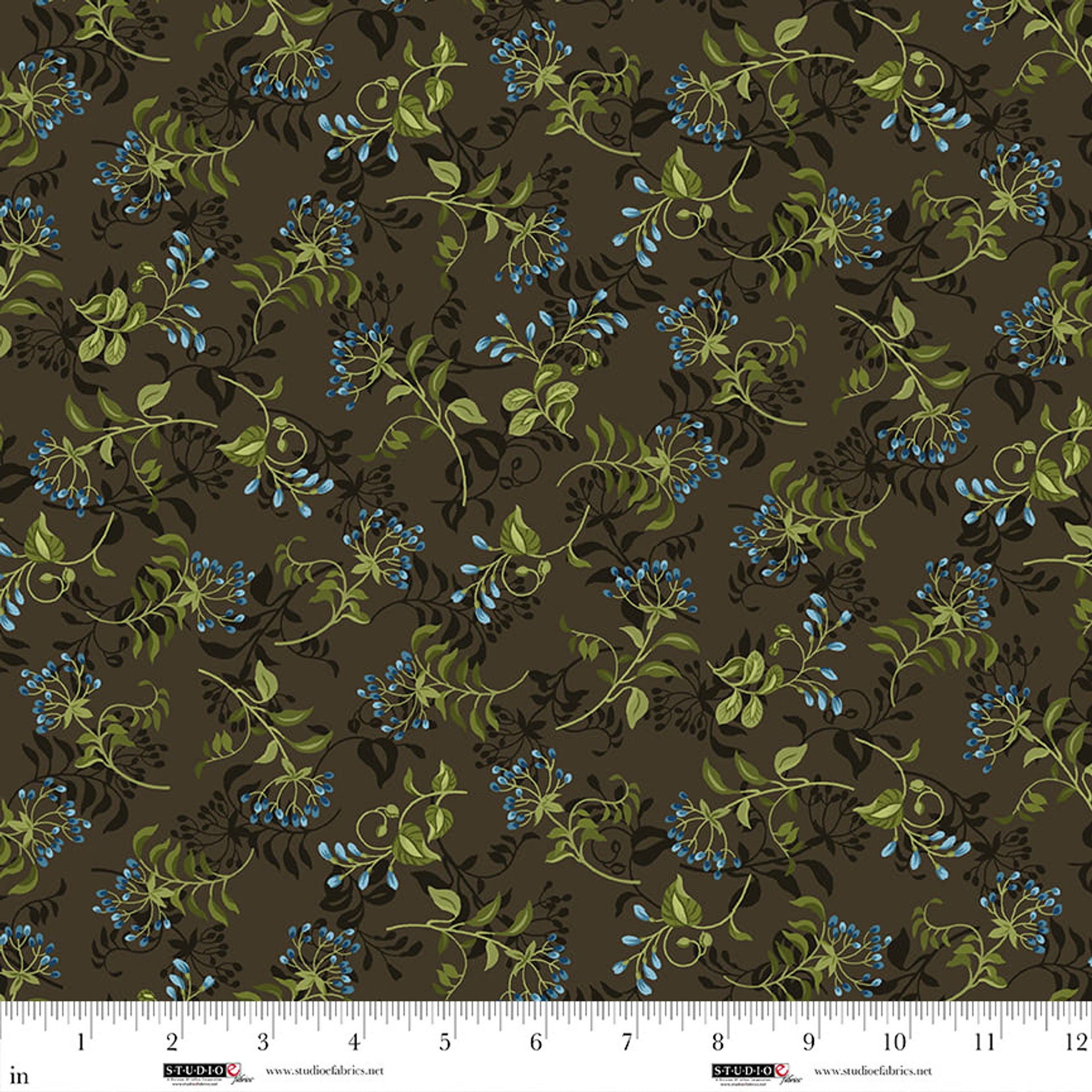 Ashdown Forest- Dk Chocolate Flowering Vine Toss: Sold by the 1/2 yard