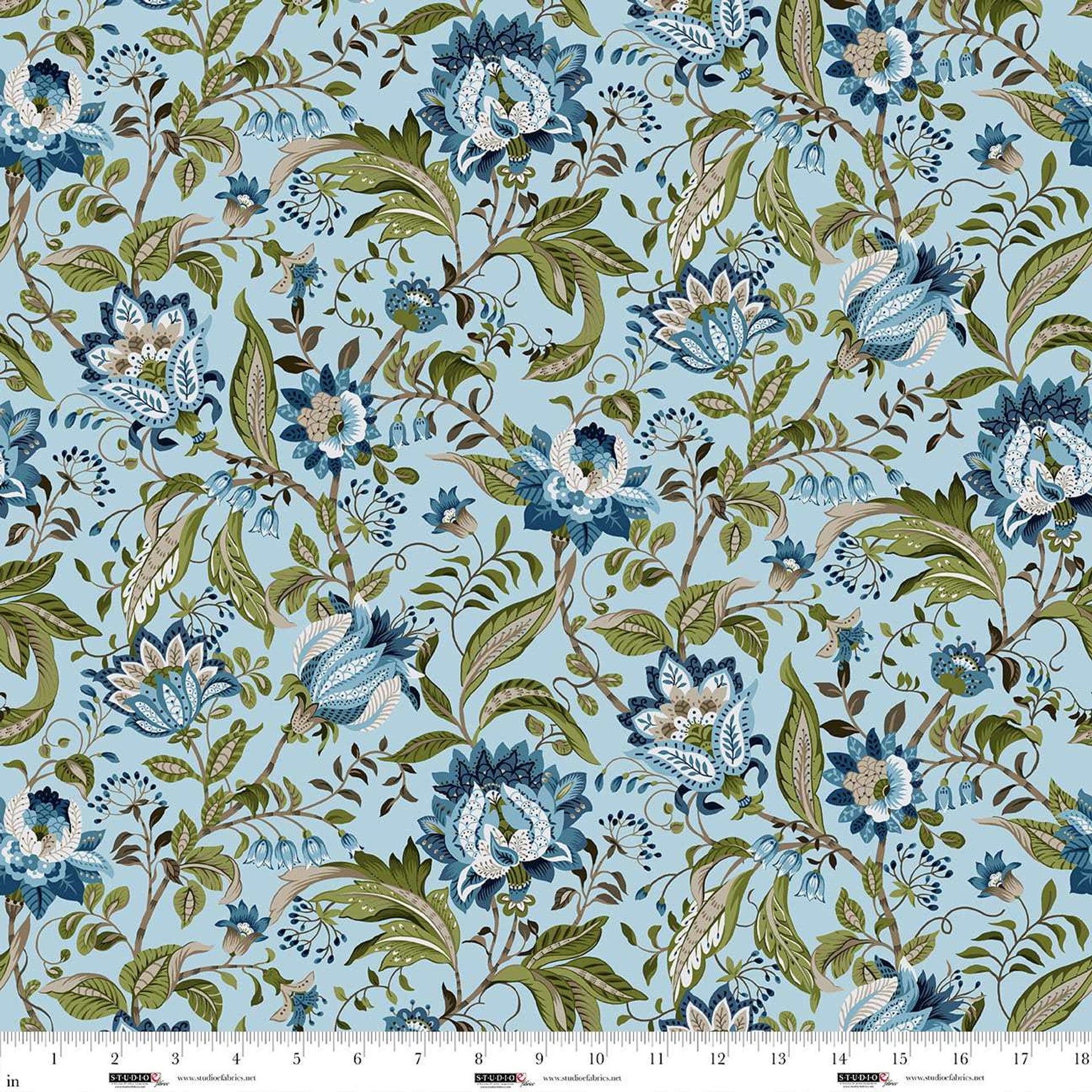 Ashdown Forest- Light Blue Jacobean Floral: Sold by the 1/2 yard
