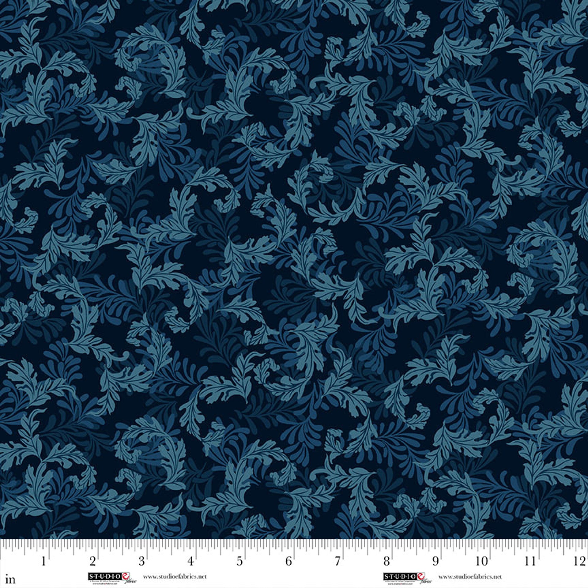 Ashdown Forest- Midnight Blue Acanthus Leaf: Sold by the 1/2 yard