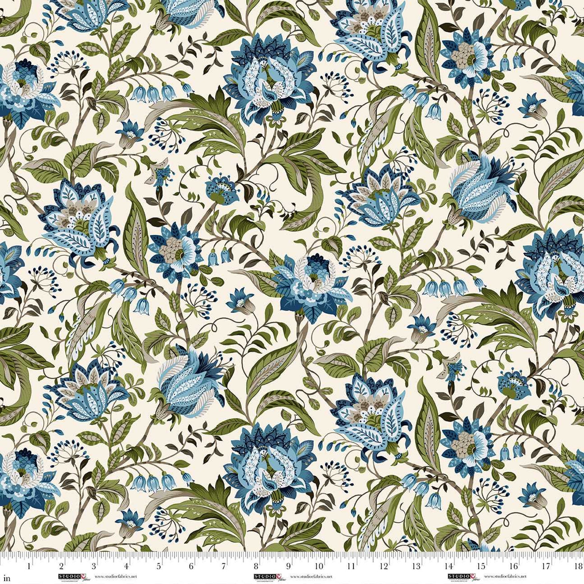Ashdown Forest- Pale Ecru Jacobean Floral: Sold by the 1/2 yard