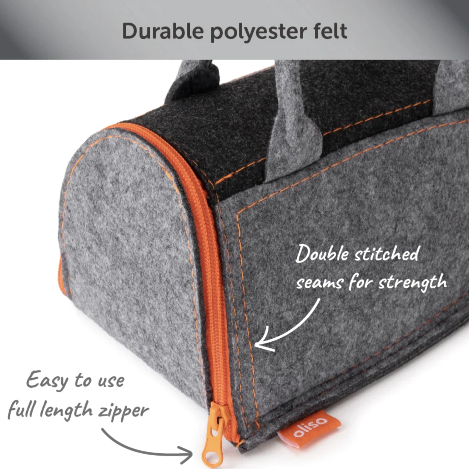 Made of strong, durable polyester felt, the carry bag provides stylish protection for your iron from dust, dirt, and scratches. It is practical for storage and travel to classes and retreats with its comfortable handles.