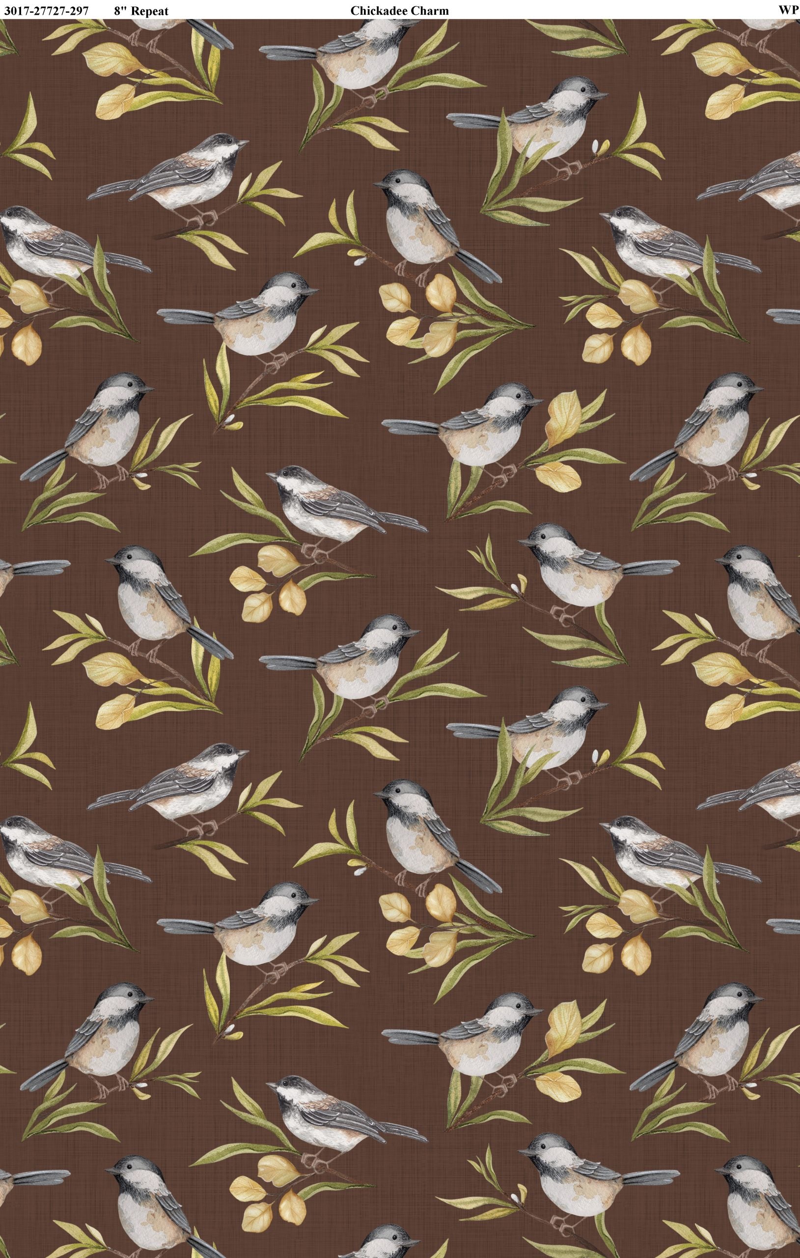 Chickadee Charm- Brown Birds All Over: Sold by the 1/2 Yard