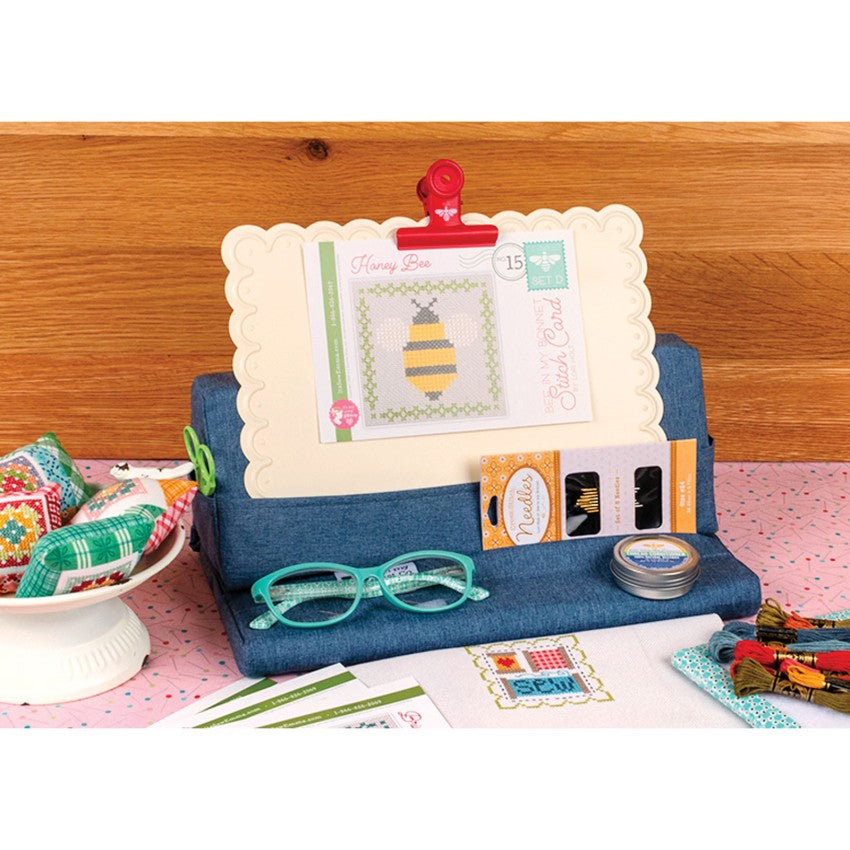The Cloud Stitchy Board by Lori Holt of Bee in My Bonnet keeps your cross stitch charts well in hand! Magnetic and trimmed with cute scallops, use any needle minder or small magnet to attach your chart to this sweet surface. Embossed with Lori Holt’s signature bee, this classic shade of Cloud also makes a great backdrop for your needle minder collection!