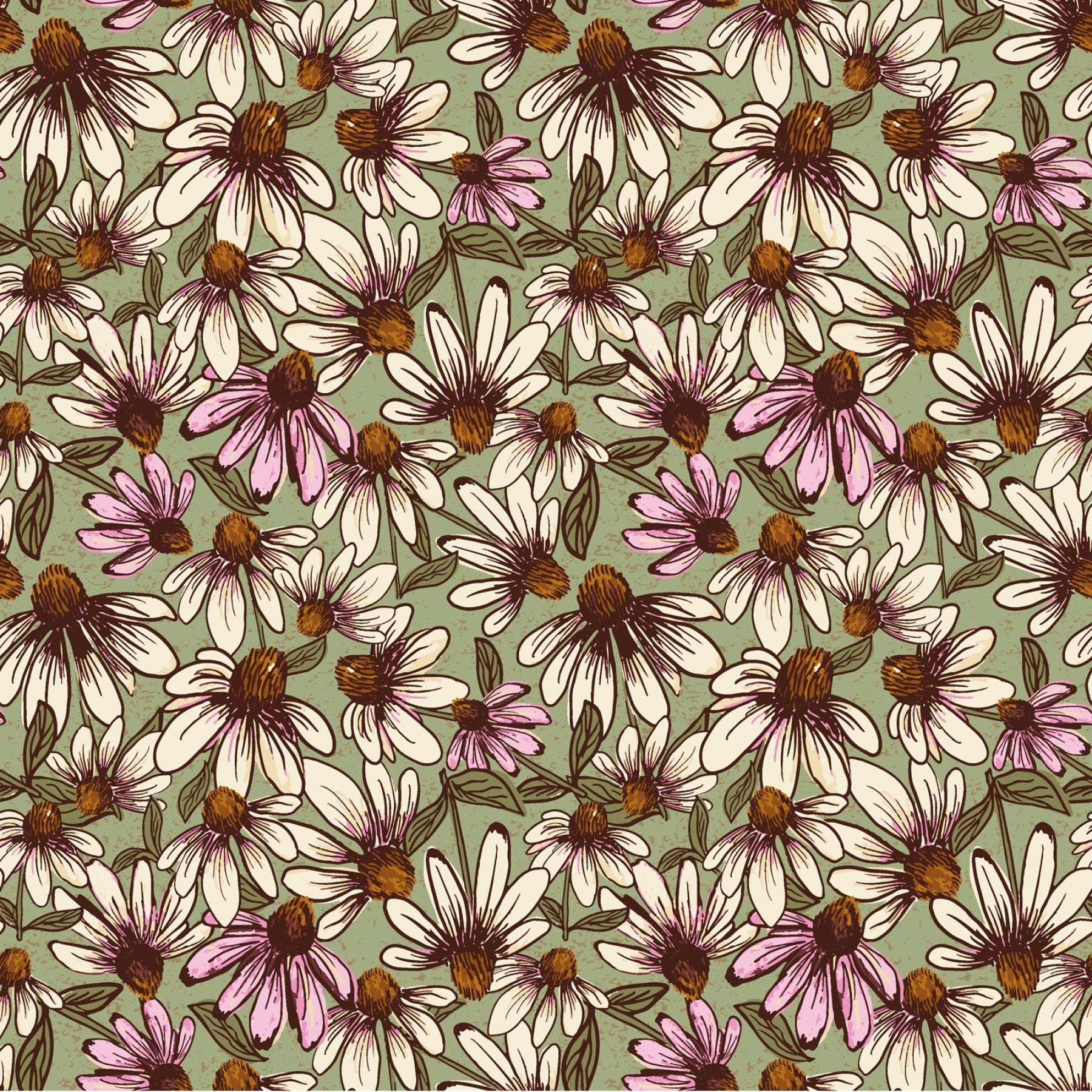 Coneflower Corral- Olive Echinacea: Sold by the 1/2 yard.