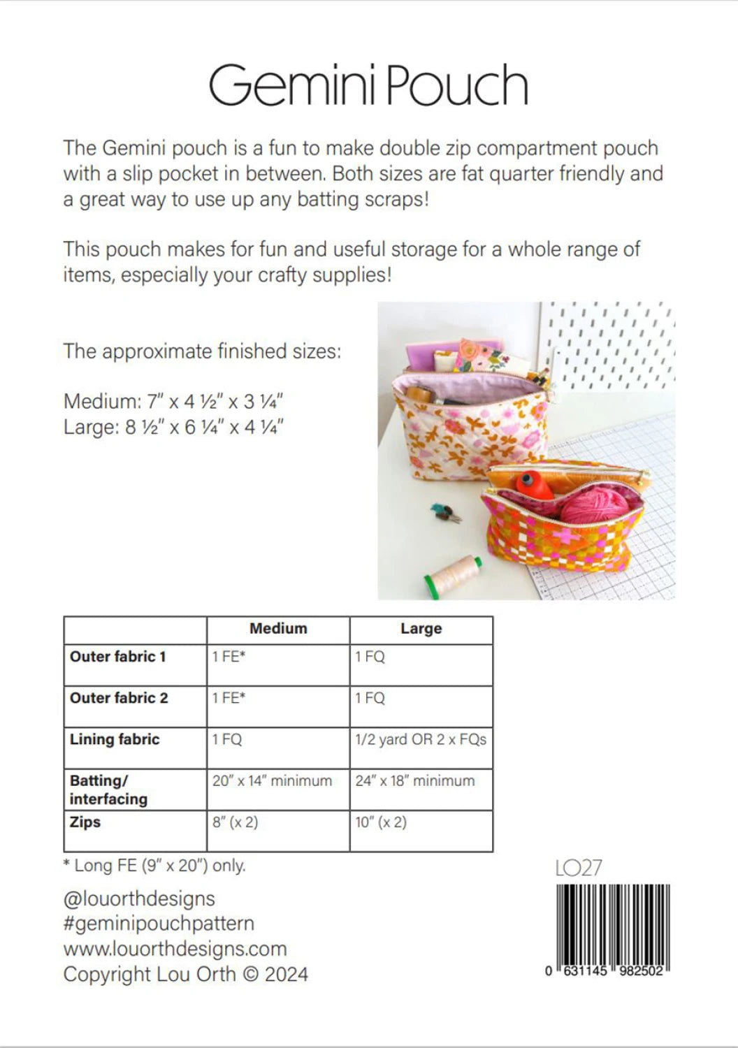 Gemini Pouch Pattern by Lou Ortho Designs