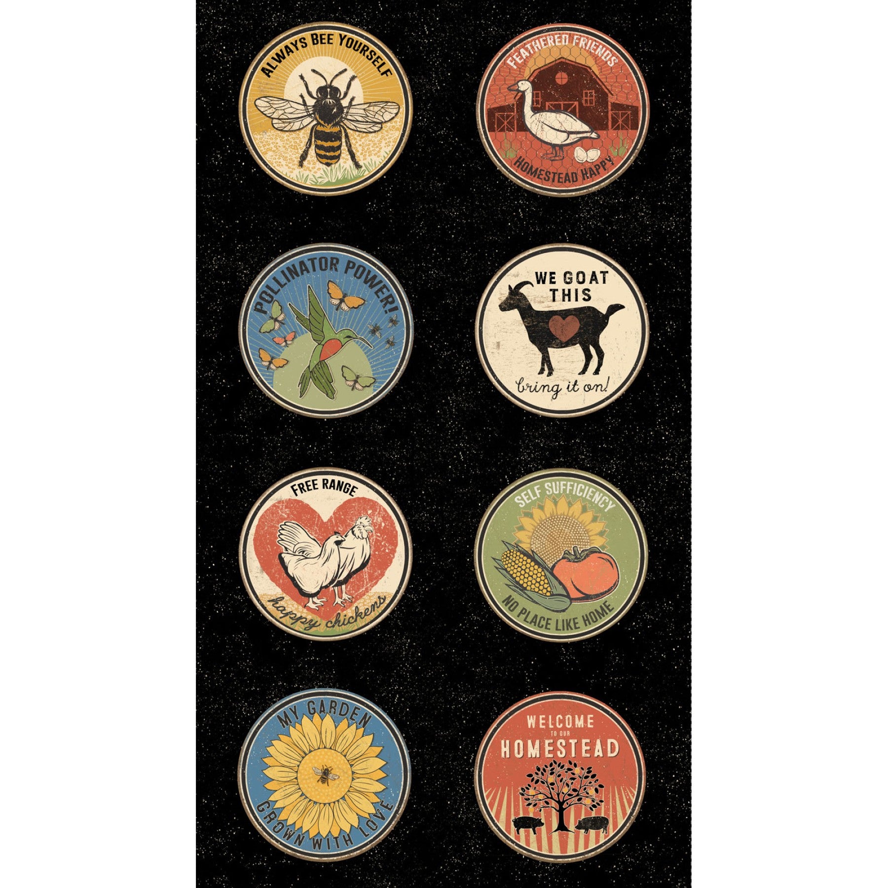 Homesteading- Black Circle 24" Panel: Sold by the Panel