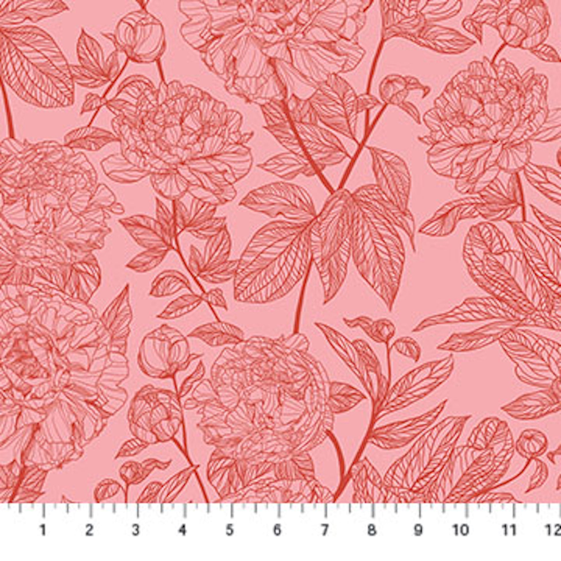 Indelible- Rouge Peony: Sold by the 1/2 yard
