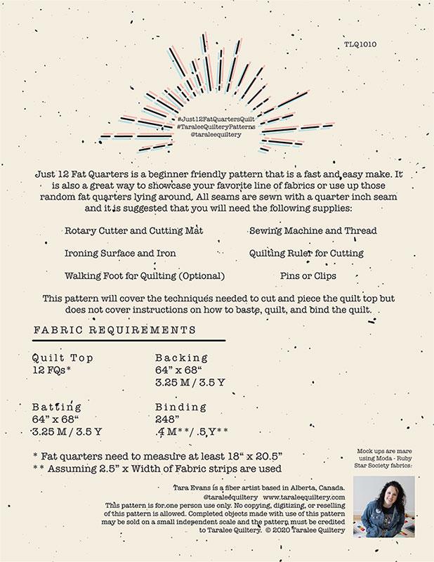 Just 12 Fat Quarters Quilt Pattern by Tara Evans Taralee Quiltery