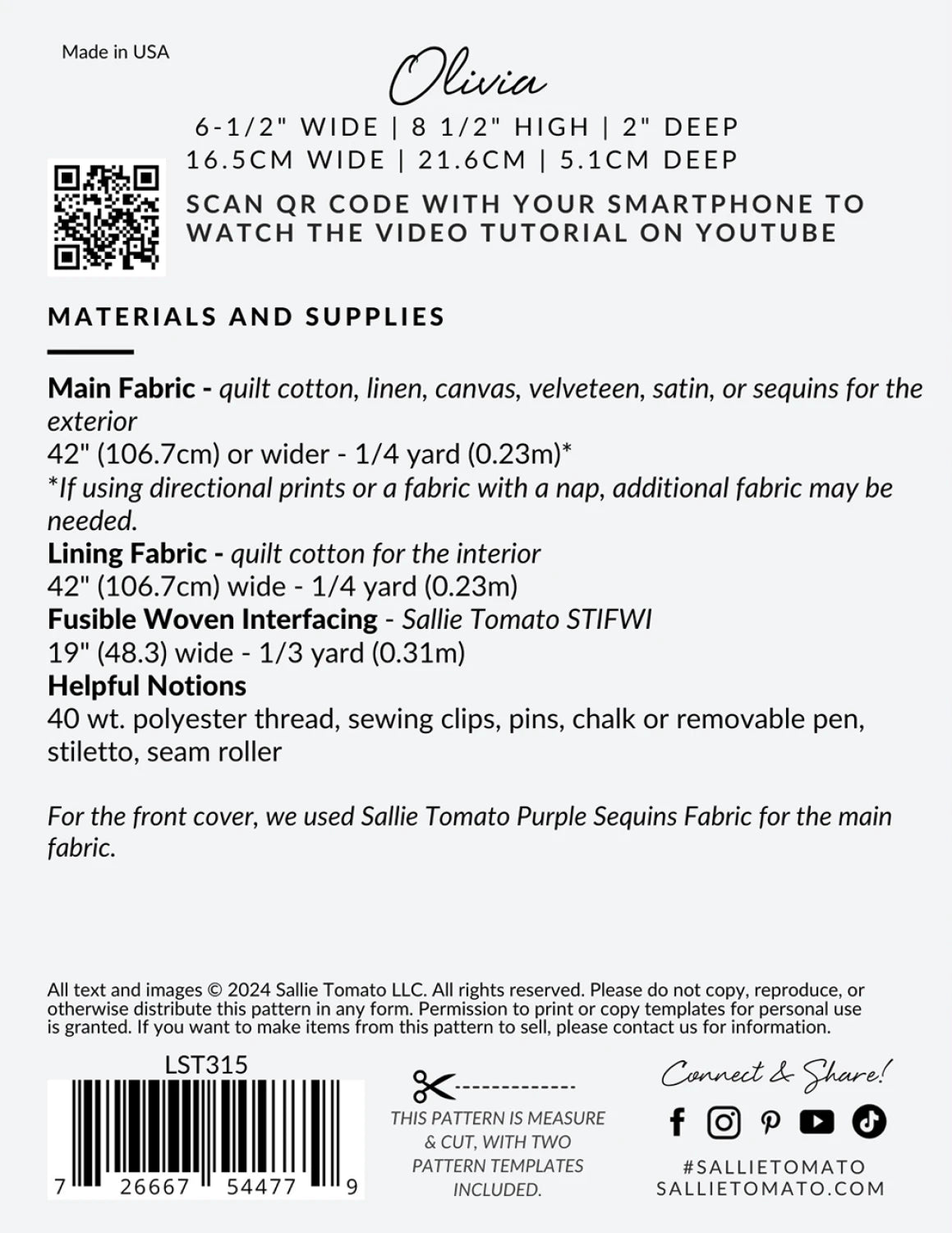 Create a sweet bag for dressy or casual occasions that’s just large enough to hold your essentials. One handle slips over the other to keep the pouch closed. Try our sequins fabric for extra glitz!