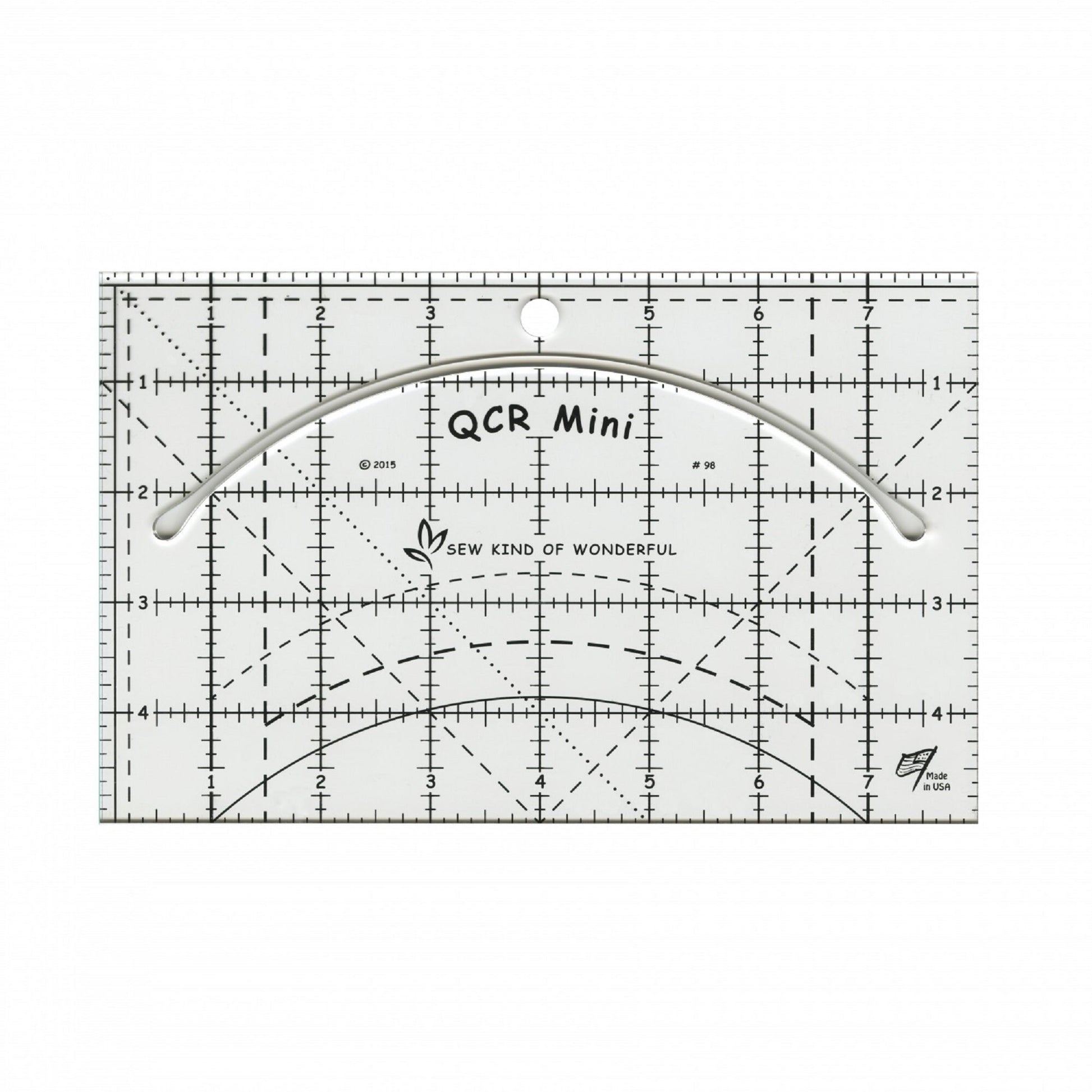 This is the mini version of the Quick Curve Ruler. It is used for cutting curves easily. Reduces curved cutting and sewing time. Multiple QCR Mini patterns are available. Use it as a square-up ruler.