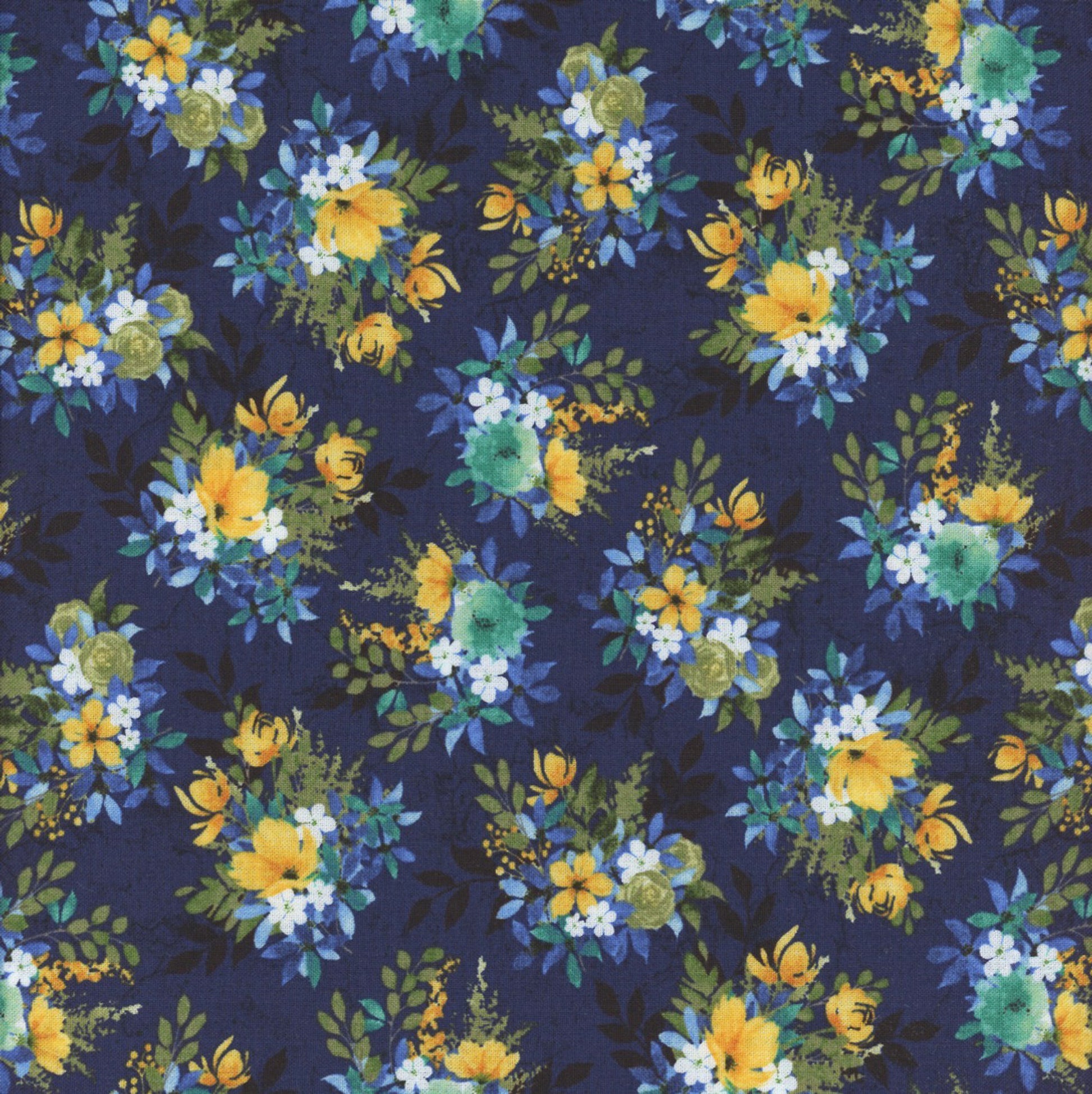 Sunlit Serenade- Blue Tossed Bouquets: Sold by the 1/2 Yard