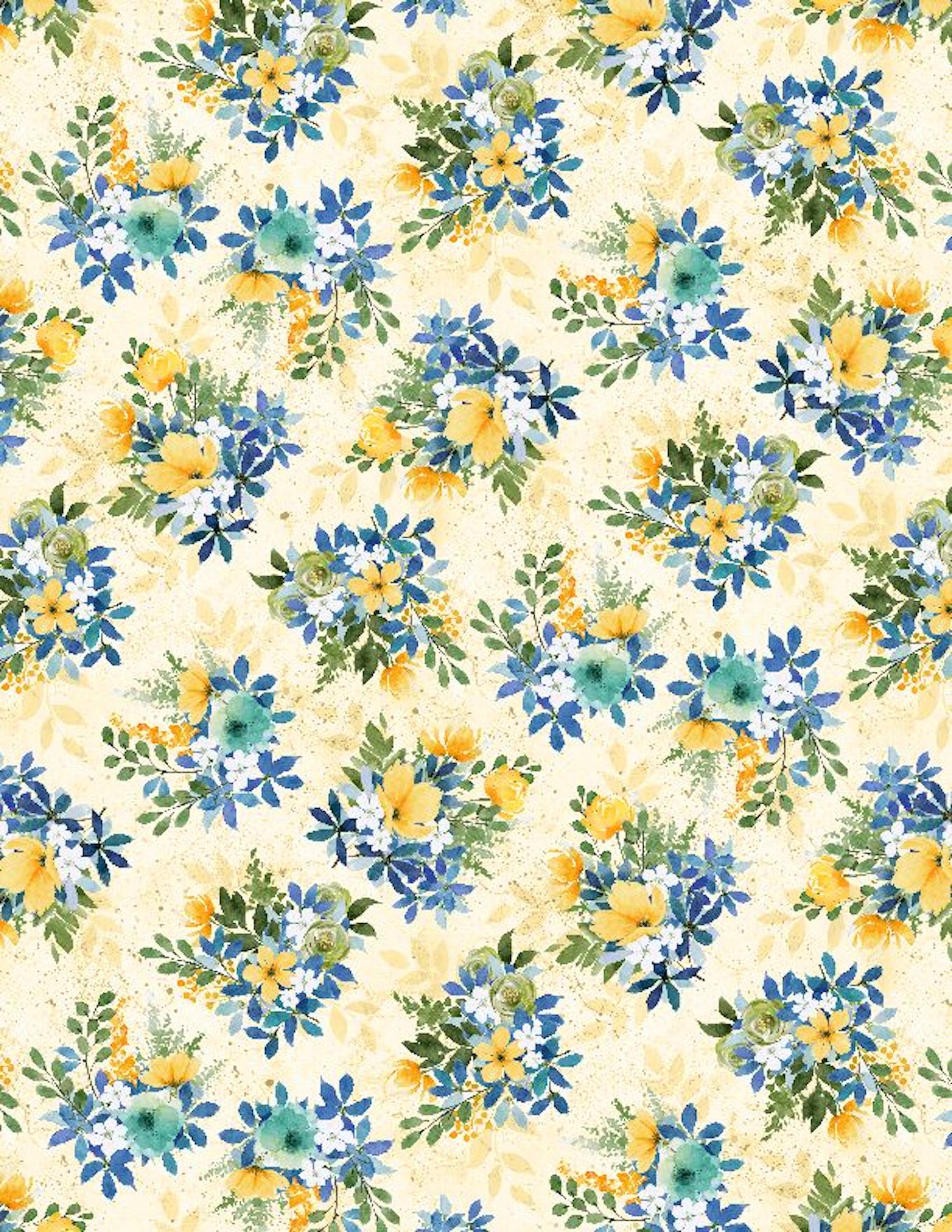 Sunlit Serenade- Light Yellow Tossed Bouquets: Sold by the 1/2 Yard